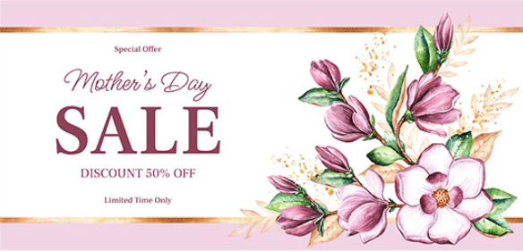 “今日開啟 – 母親節(jié)獨(dú)家大促!” / “Starting Today – Exclusive Mother’s Day Discounts!”
